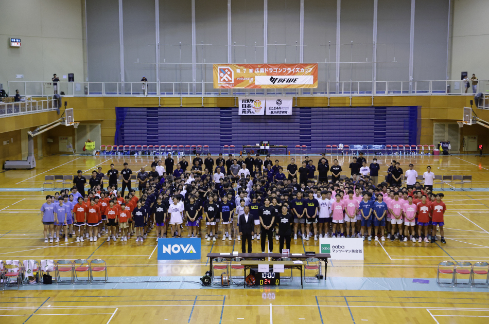 広島ドラゴンフライズでは、県内外から男女計24チームが集結し、「第7回広島ドラゴンフライズカップ ~PRESENTED BY B.FIVE~」を8月16日(土)~17日(日)の2日間に渡り、後援を行っていただいております廿日市市のGLOBAL RESORT 総合スポーツセンター サンチェリーにて開催いたしました。