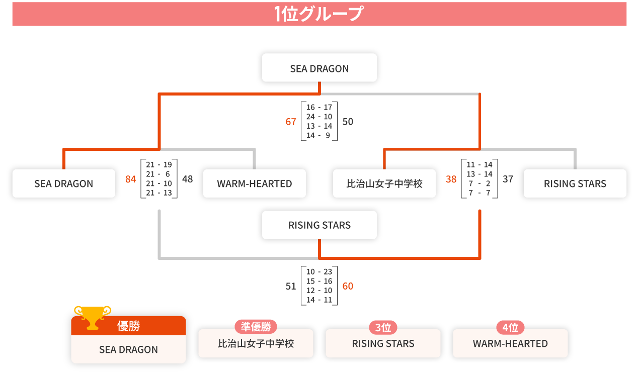 順位決定戦(男女 予選1位から3位までの順位ごとにトーナメント戦)